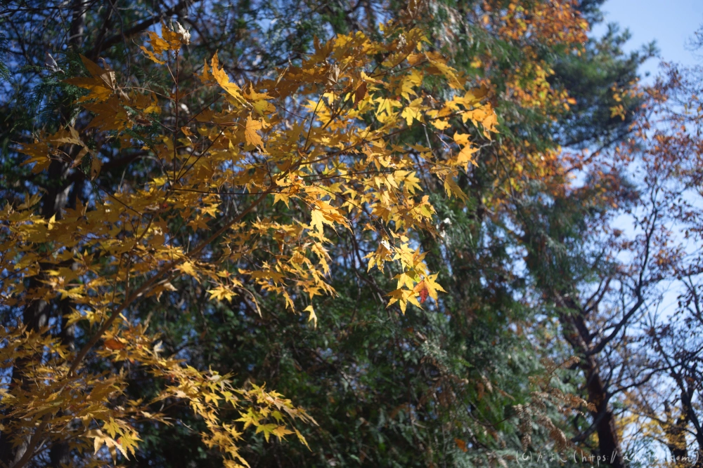 ところどころに紅くなったり黄色くなったりしたもみじがあった