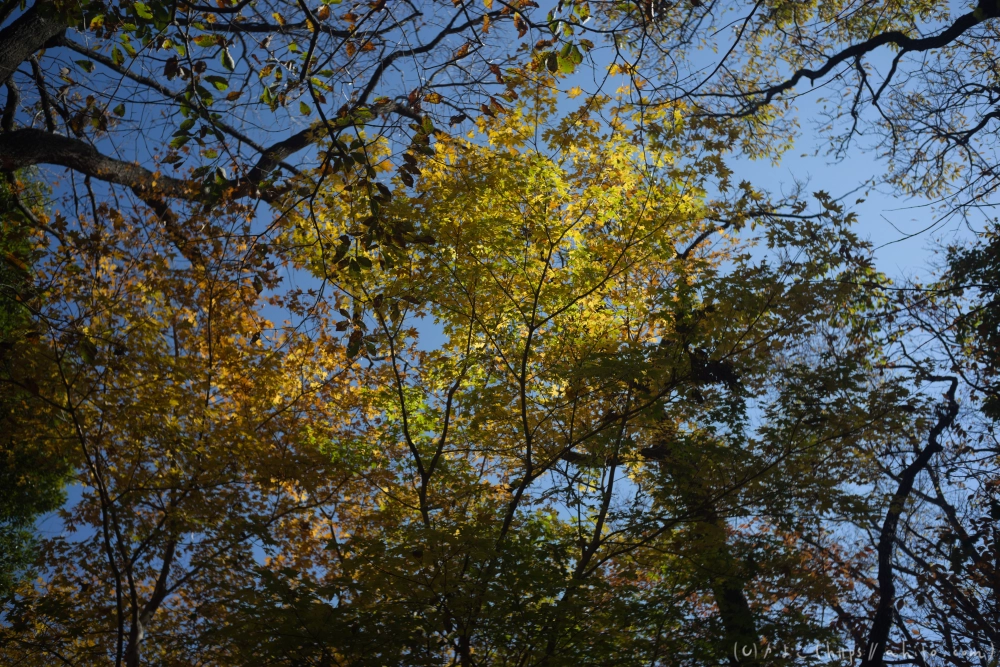 今回は快晴で、木々は枯れ模様、道も木の葉であたたかい